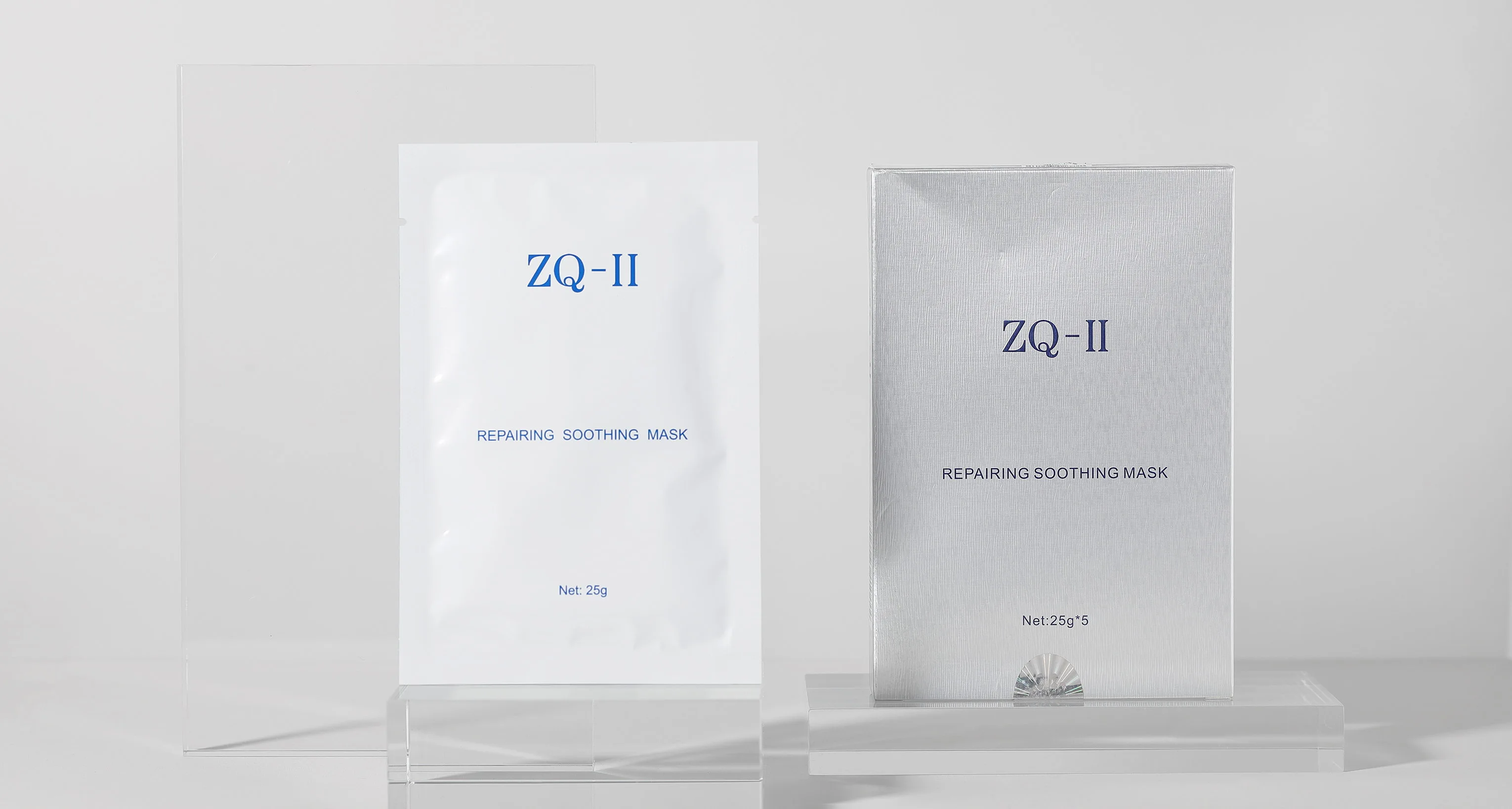 Маските за лице са продукти за грижа за кожата с различни формулировки, насочени към различни нужди на кожата. Те могат да варират от хидратиране и озаряване до борба с акне, почистване и стареене против. За хидратиране на маски, общи съставки като хиалуронова киселина и колаген временно засилват съдържанието на вода на кожата, предлагайки нахален ефект върху най -външния слой, роговия слой. ЗаZQ-II Ремонт на успокояваща маска, съставки като олигопептид-1 не само осигуряват незабавна хидратация, но и са ползи от поправянето на повредения кът.