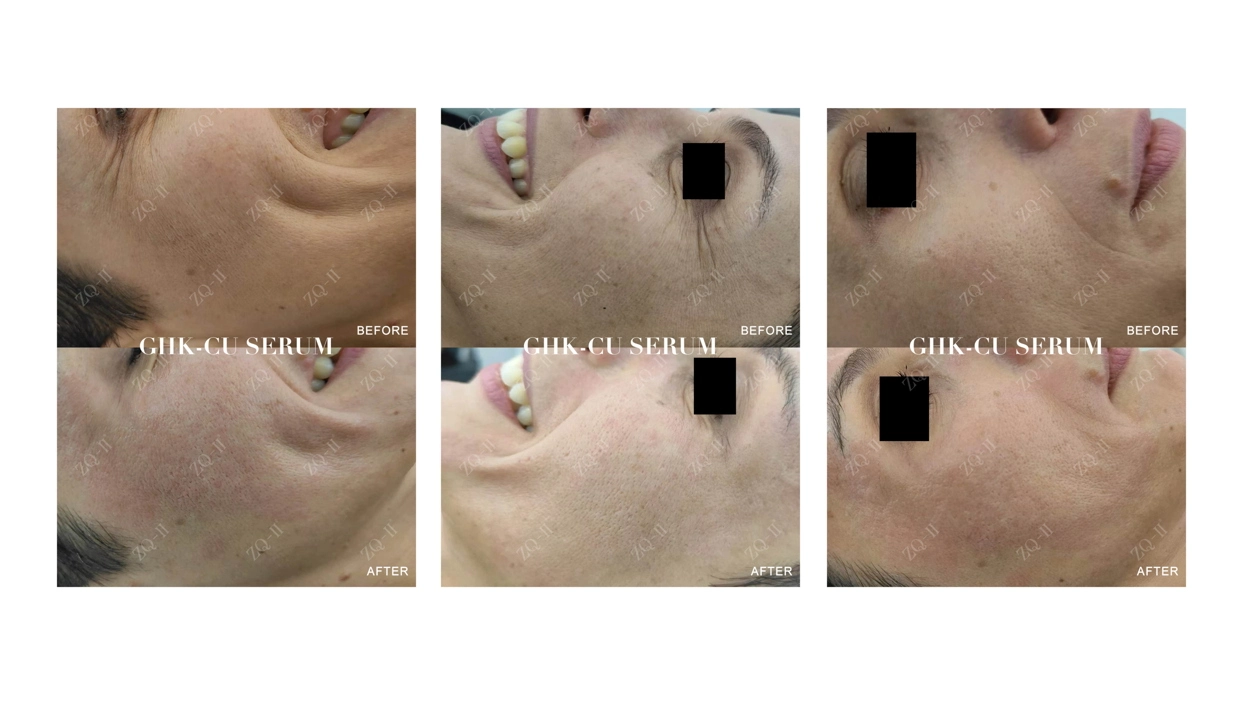 Медните пептиди са като роялти за грижа за кожата. Те твърди, ремонтират и защитават, като ви дават този жизнен, младежки блясък. Разбира се, те са инвестиция, но напълно си заслужават. Немският клиент изпита забележително подобрение на кожата след преминаванеZQ-II GHK-CU серумприлага се с 0,5 мм микронели. Непосредствените резултати показват видимо по-твърда, по-гладка кожа с забележимо намаляване на фините линии и бръчки, както се вижда в сравнението преди и след. Ако търсите да изпитате магията на медните пептиди,ZQ-II GHK-CU серуме вашият краен избор за постигане на видимо подмладена и жизнена кожа.